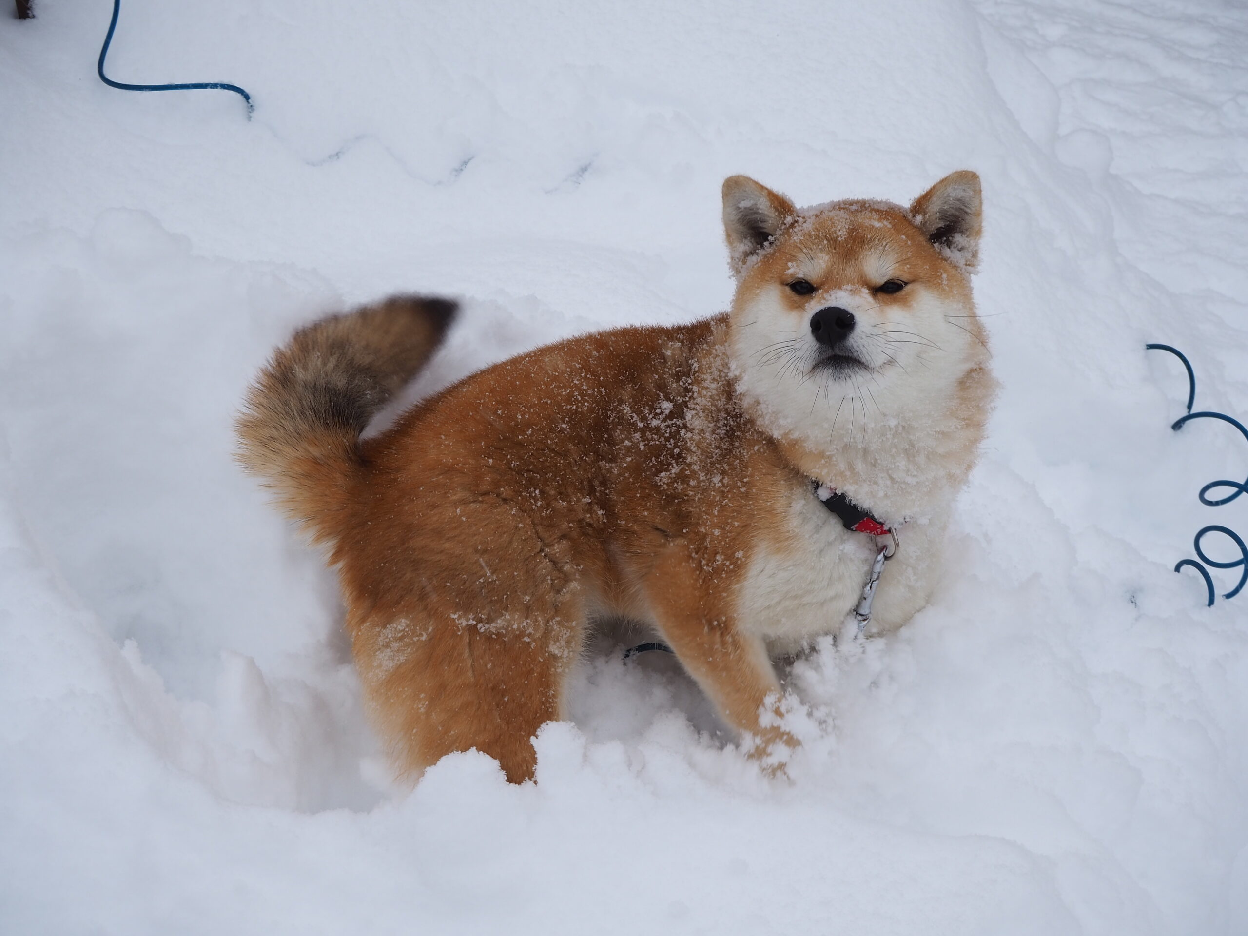 ①② #大内宿 と雪遊びに興じるワンちゃん