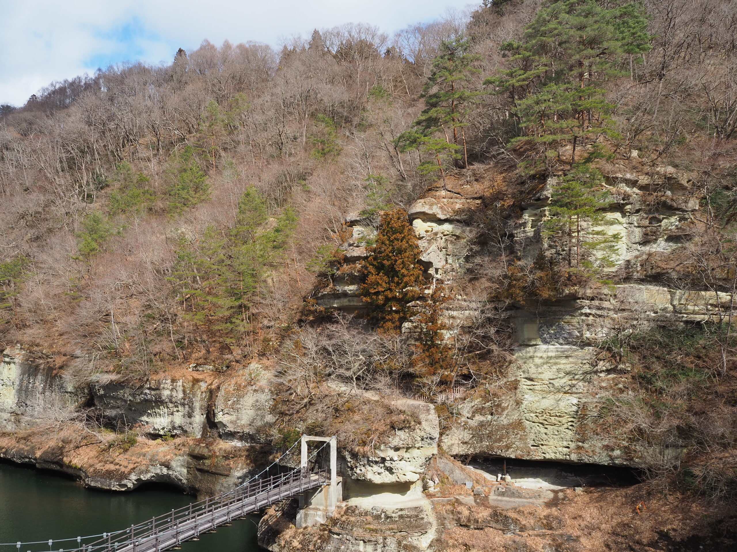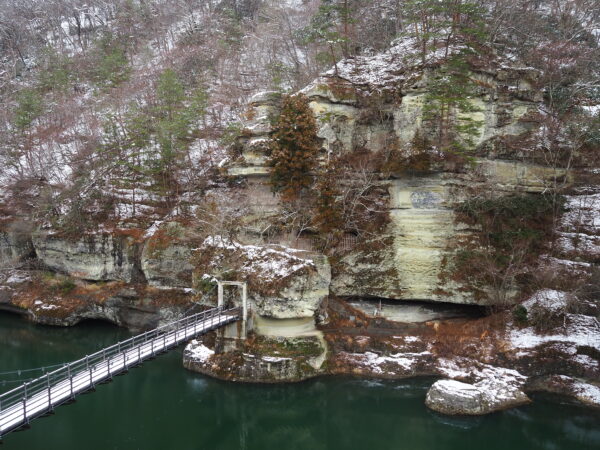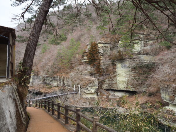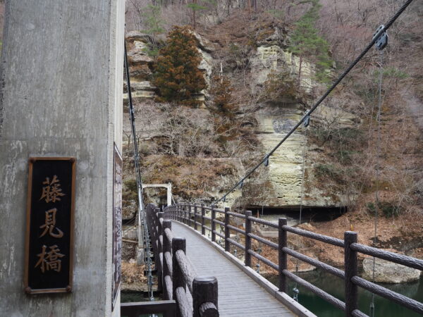 冬期閉鎖しておりました、塔のへつりの吊り橋「藤見橋」ですが、本日(3/16)、通行止めを解除いたしました。