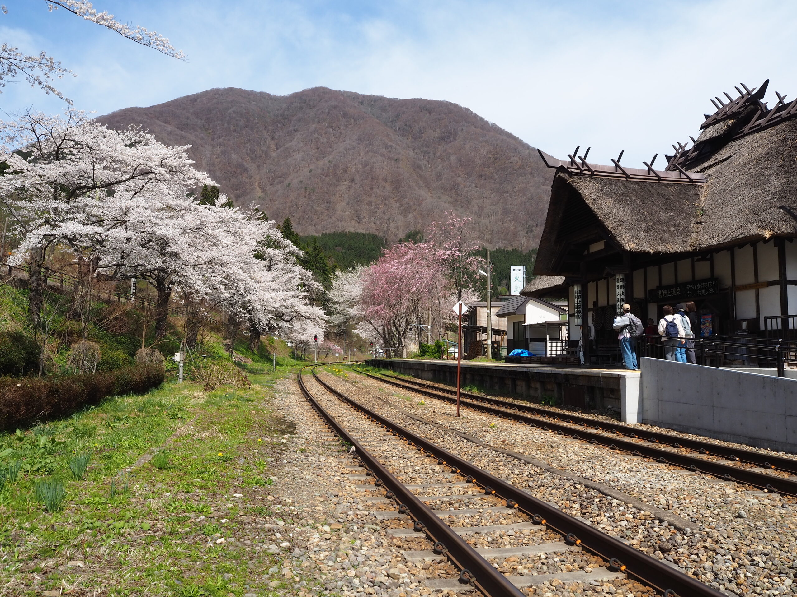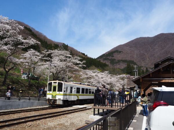2026年04月13日 湯野上温泉駅の桜が見頃です